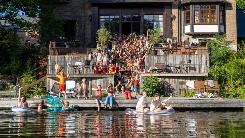 Tussen deze workshops door krijgt je soep met brood & kaas geserveerd en kan je even in het bos hossen en aan het kampvuur zitten.